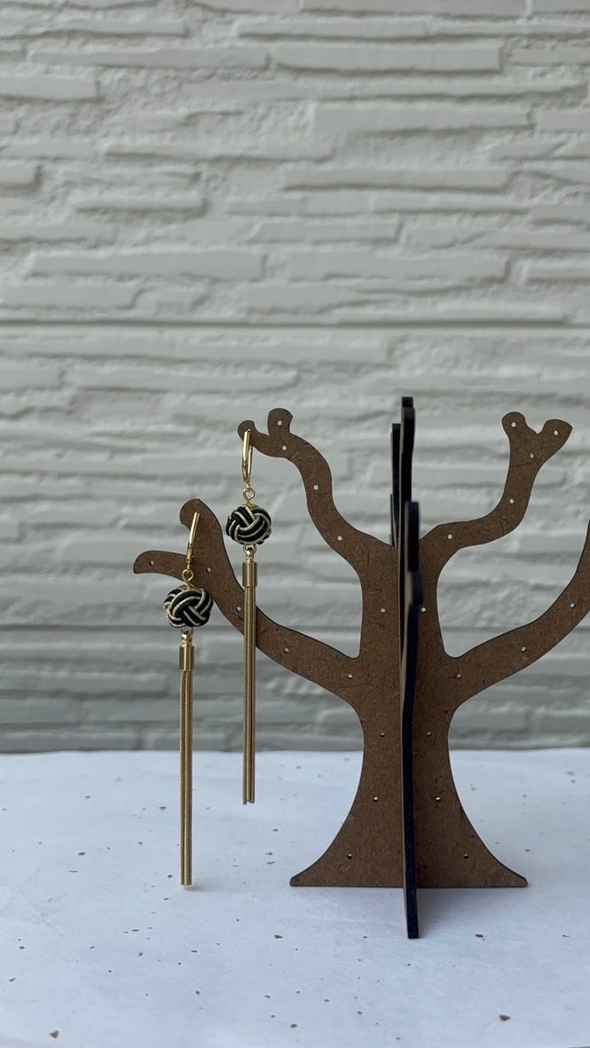黒とゴールドの水引を結んだ玉結びから、細いゴールドのロングチェーンが伸びるピアス。 夜空に金星がふるえるような、深みのある美しさ。 少し特別な日の夜に、演切後な利店に、凛凛と耳元を飾る。 素材:水引、ゴールド金具 ハンドメイドのため、ひとつひとつ表情が異なります。